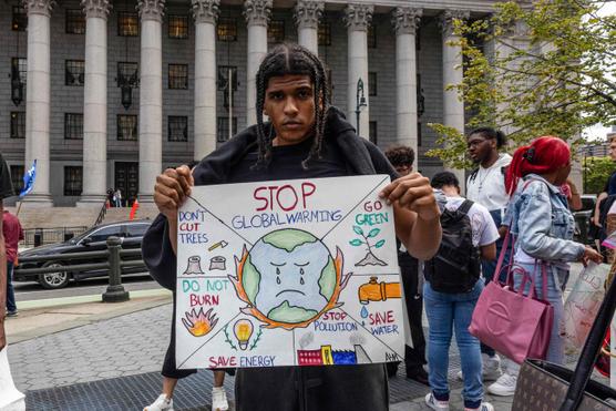 Lors d’une manifestation des jeunes pour le climat mondial, avant la Semaine du climat et la session générale de l’ONU, à New York, le 20 septembre 2024. Alex KENT / AFP
