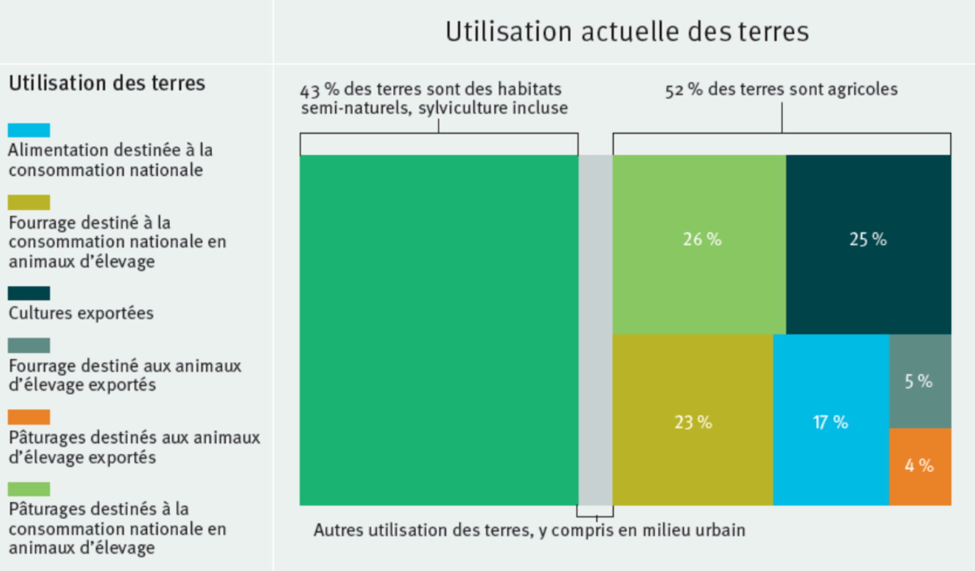 Occupation actuelle des terres en France, avec décomposition des usages finaux des terres agricoles.