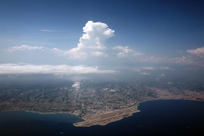 L’aéroport de Nice, comme de nombreux aéroports européens, est vulnérable face à la montée des eaux provoquée par le changement climatique. Valéry HACHE / AFP