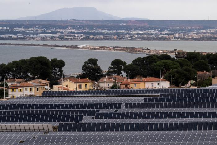 Des panneaux photovoltaïques à Chateauneuf-les-Martigues (Bouches-du-Rhône), le 28 janvier 2025. Miguel MEDINA/AFP
