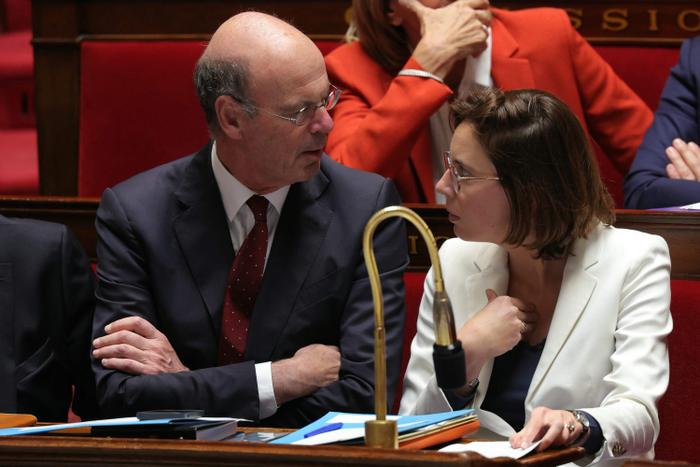 Eric Lombard, ministre de l’économie, et Amélie de Montchalin, ministre chargée des comptes publics, lors d’une séance de questions au gouvernement à l’Assemblée nationale, à Paris, le 30 avril 2025. Thomas SAMSON / AFP