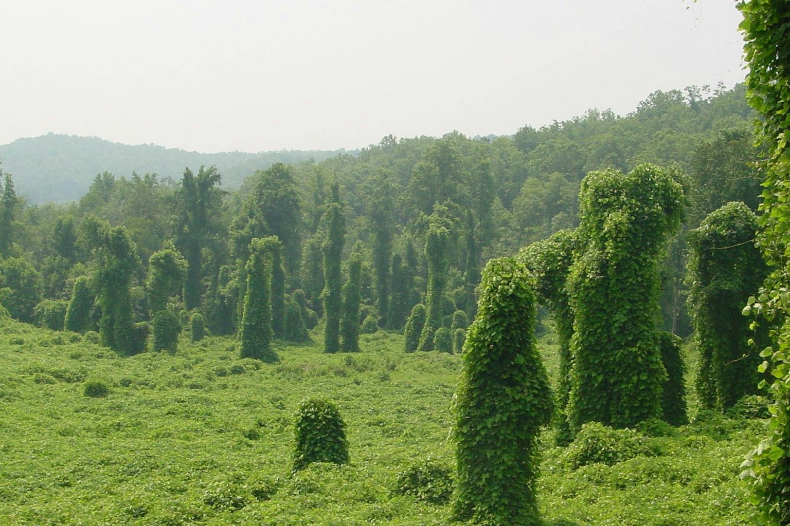 Importée d’Asie lors de l’exposition de Philadelphie en 1876, le kudzu (Pueraria montana var. lobata) est une espèce invasive qui touche les États-Unis. Kerry Britton, USDA Forest Service, Bugwood.org, CC BY-NC-ND