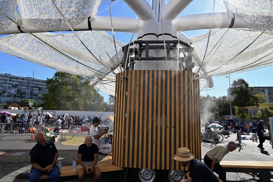 Une ombrière gonflable sur la place André-Abbal, à Toulouse (Haute-Garonne), le 30 septembre 2023. Cette ombrière géante se plie et se déplie, et peut être déplacée. Frédéric CHARMEUX/La DEPECHE du MIDI/MAXPPP